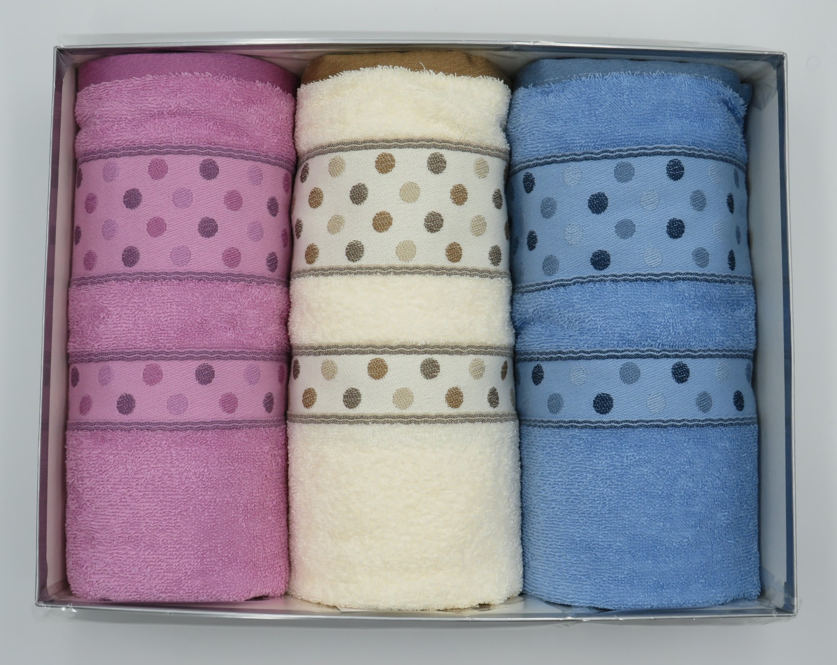 Completo asciugamani Marchio: Botticelli Home Colore: assortimento B fuxia- assort A tortora- disegno pois assort A giallo - disegno tortora bianco Grigio Articolo: Progress assort B/A - Art. Pois- art progress.assort A