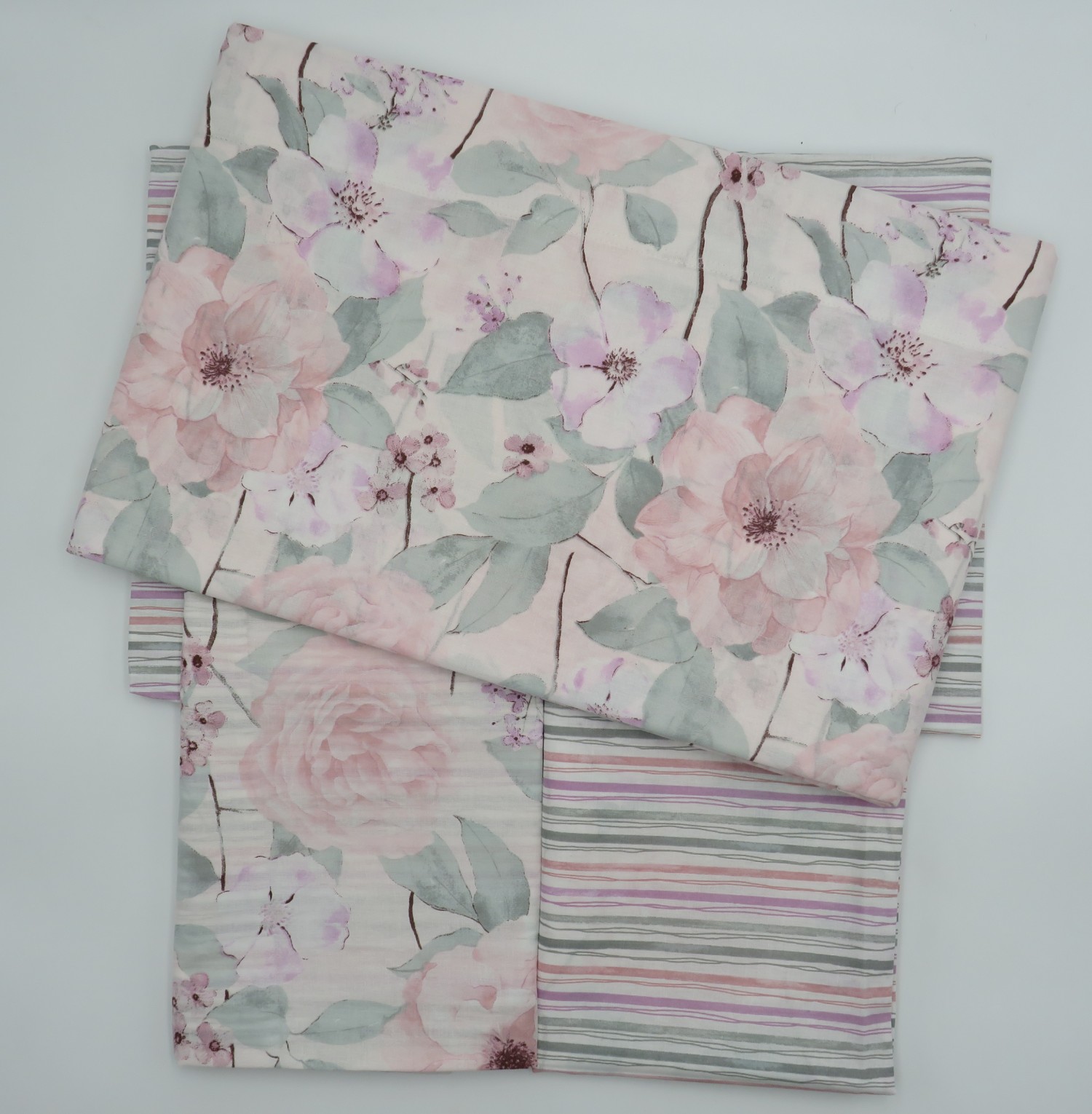 Marchio:Linea Oro Art:Isabel Cod:38 Caratteristiche: Completo di lenzuola matrimoniale 100% cotone, sotto fantasia rigata, sopra fantasia floreale, federa dobuleface fantasia rigata e floreale, stiro facile, confezionato di busta.
