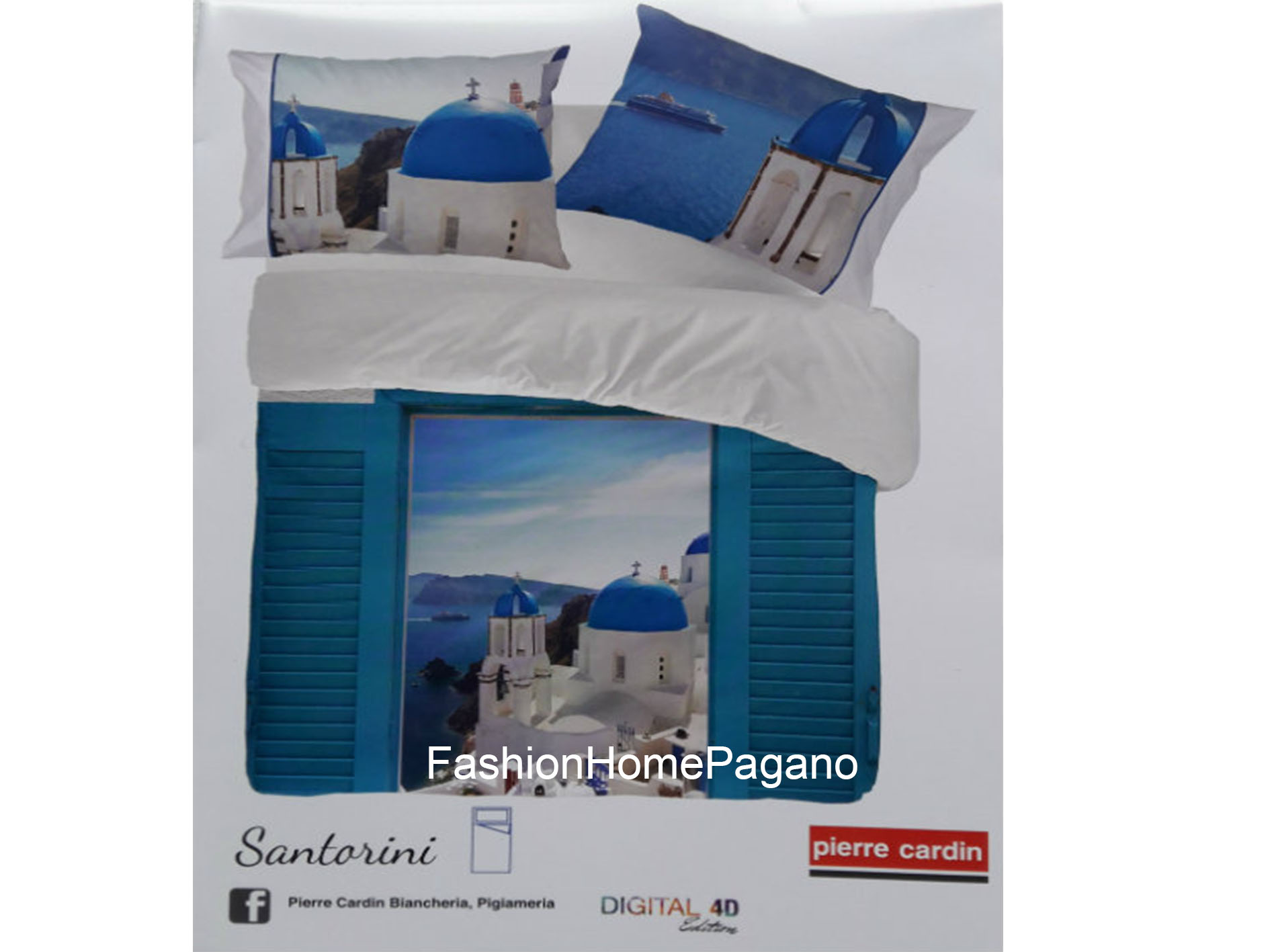 Disegno ( Paris by night e Santorini) federe con bordino laterale