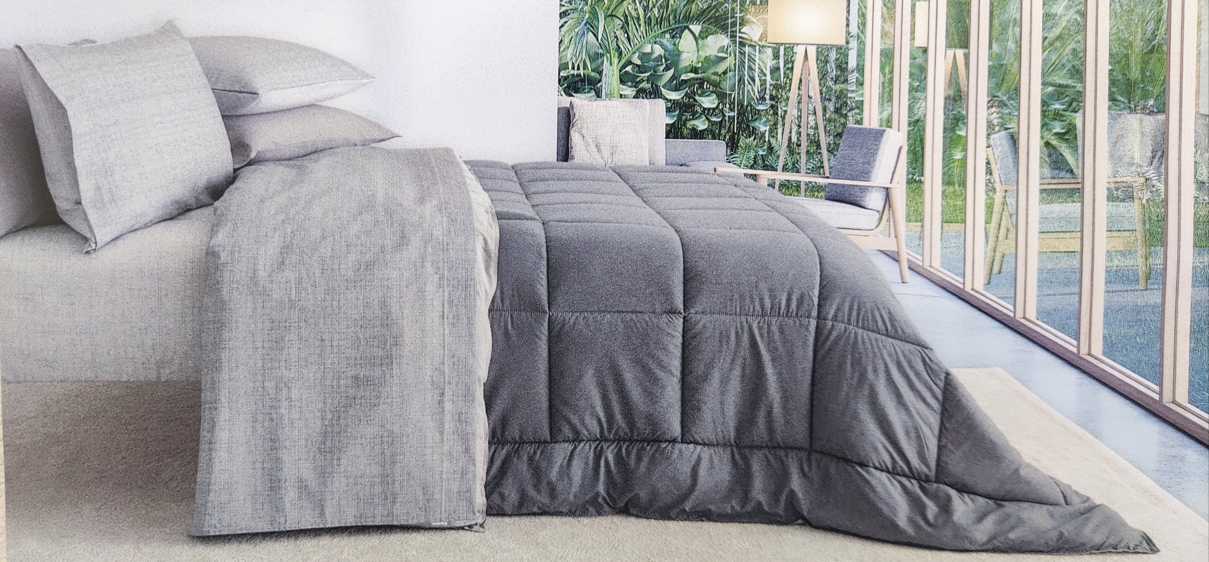 Confezione composta da quattro pezzi: 1 lenzuolo sotto 180x 200+28 cm; 1 lenzuolo sopra 240x290 cm; 2 Federe 50x80 cm bicolore,