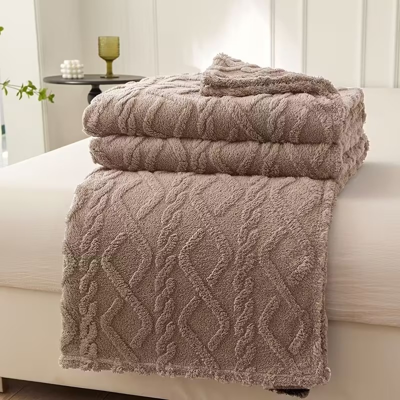Coperta Plaid Sherpa di Pile Super Morbida e Calda Divano Letto rombi uncinetto