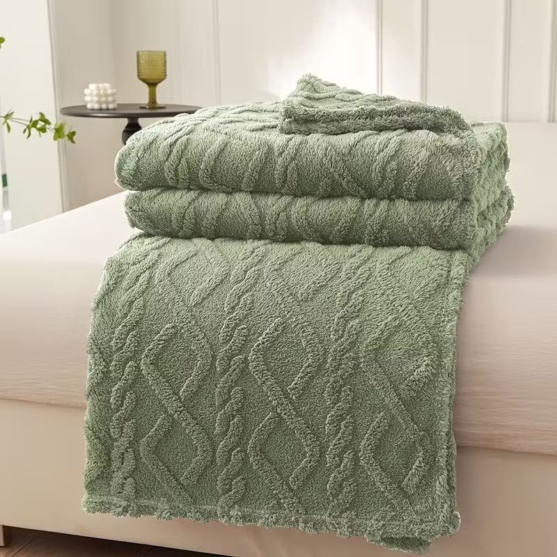 Coperta Plaid Sherpa di Pile Super Morbida e Calda Divano Letto rombi uncinetto