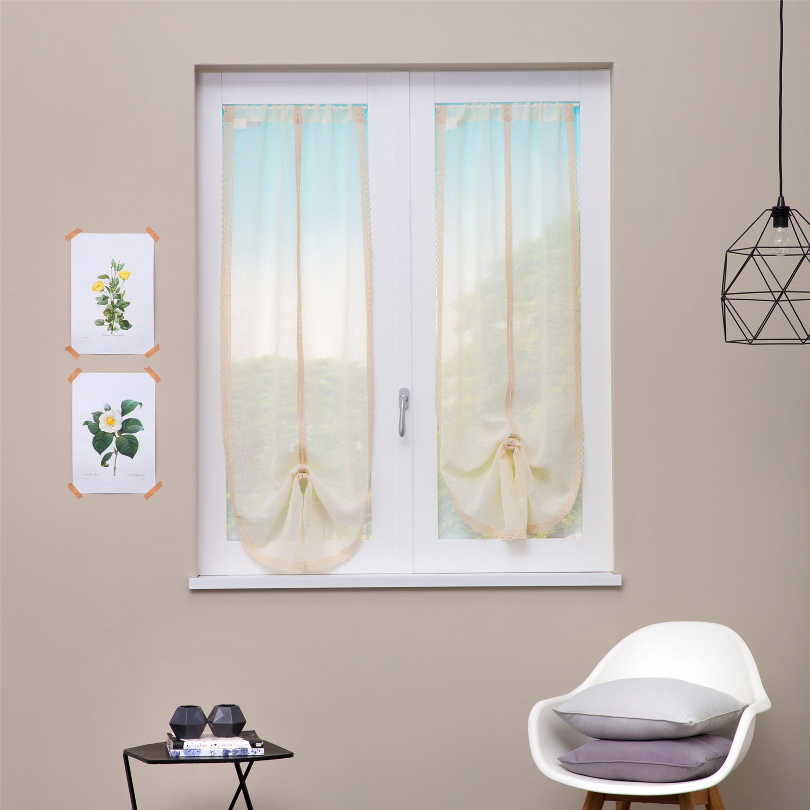 Coppia tende a vetro per finestra regolabili con merletto misura 60x150 cm