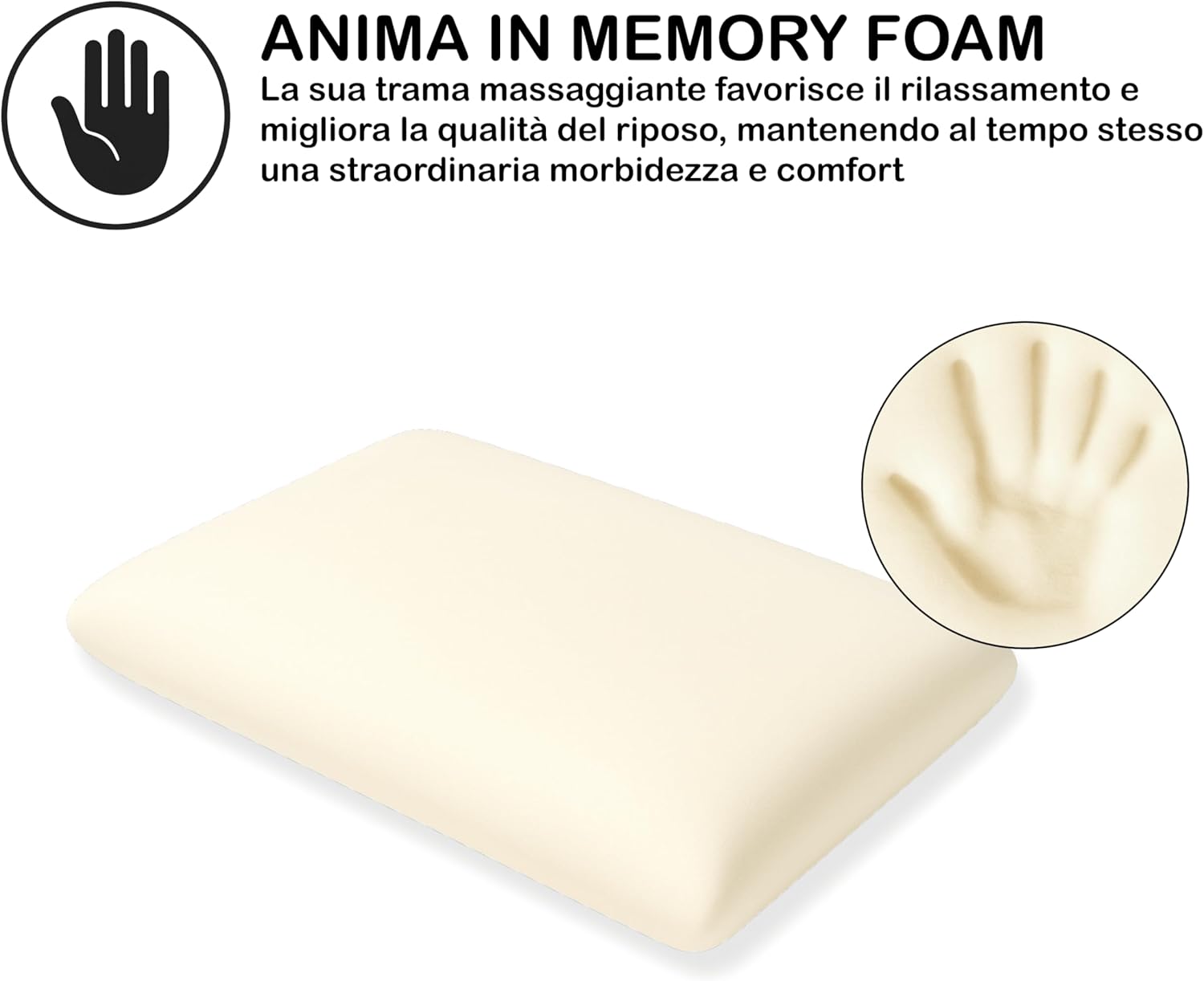 Caratteristiche: La sua componente è costituita da anima lastra 100% viscoelastico termosensibile ad effetto impronta. Fodera: 58% poliestere e 42% viscosa (fibra di legno) trattamento aloe vera offre un supporto impareggiabile in grado di mutare forma, consiste e temperatura in base alle esiente del tuo corpo. Lavaggio a mano con detersivo delicato. Sciacquare in acqua fredda stringere tra due asciugamani per assorbire l'acqua, farlo asciugare lontano dal termosifone o mezzi di riscaldamento o al sole. Non si puo' pulire a secco