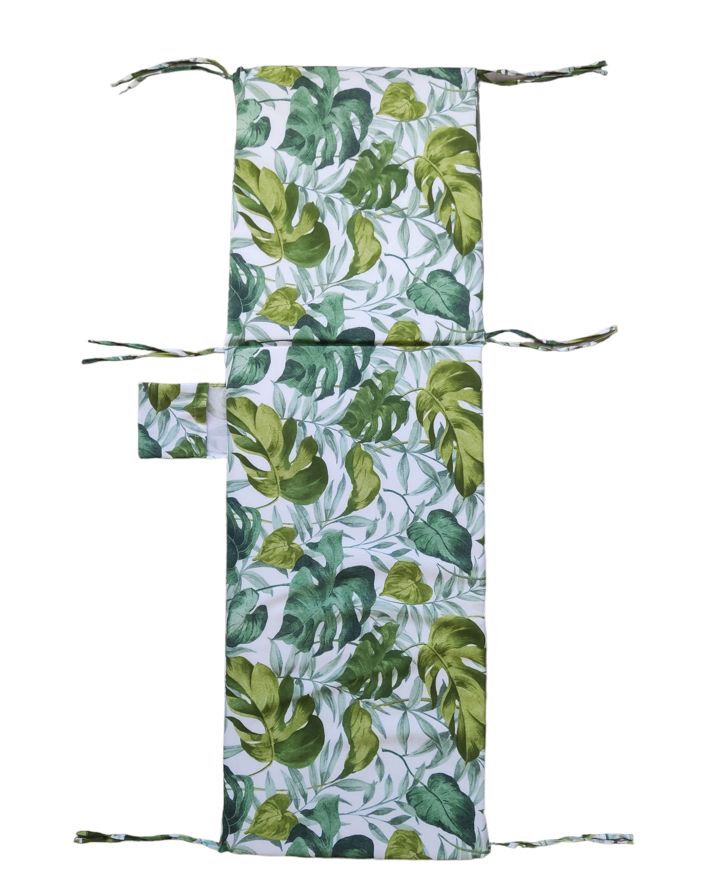 Cuscino materassino per lettino prendisole giardino esterno sfoderabile con taschino foglie tropicali Verde