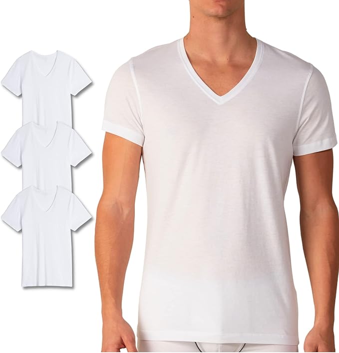 3 Maglie Uomo Caldo Cotone Interlock Mezza Manica Scollo V Bianco