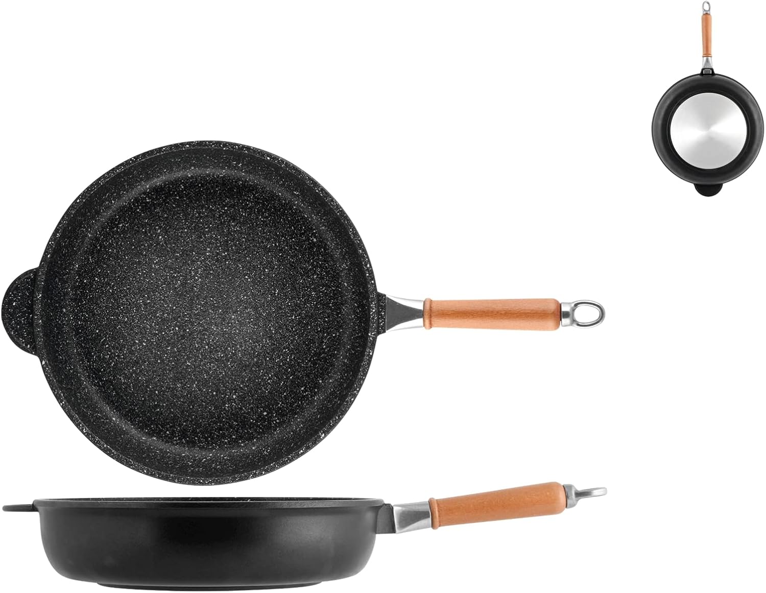 Padella con rivestimento antiaderente a 5 strati con minerale di pietra "PIERRESTONE" qualità Italiana difficilmente reperibile in Italia poichè prodotto quasi in esclusiva per il mercato Francese Queste pentole sono prodotte artigianalmente in alluminio colato a mano con la tecnica della fusione per gravità. Questa tecnologia prettamente artigianale consiste nel versare in uno stampo con l'impronta del pezzo da realizzare l'alluminio liquido sfruttando la sola forza di gravità. In questo modo il metallo fuso inizia a riempire lo stampo dal basso verso l'alto occupando il posto dell'aria che trova sfogo verso l'alto, Le Fonderie Della torre sono tra le rare aziende al mondo che producono con questa tecnica bistecchiere padelle e casseruole che oltre ad avere una pesantezza molto elevata (forse le più pesanti che ci sono in commercio)offrono grazie alla sua superfice grezza un'insuperabile base aggrappante per il rivestimento in pietra rendendolo così molto più resistente ai graffi e duraturo rispetto a tutte le altre pentole con rivestimento minerale che trovate in commercio, Niente più fumo e cattivi odori rivestimento completamente esente da PFOA lega di alluminio priva di nichel e metalli pesanti alta resistenza agli utensili metallici con la serie STONE SAPORITA sarà come cucinare sulla pietra, Manico il legno removibile adatta a tutti i fornelli gas elettrico vetroceramica e alogeno , Prodotto 100% made in Italy