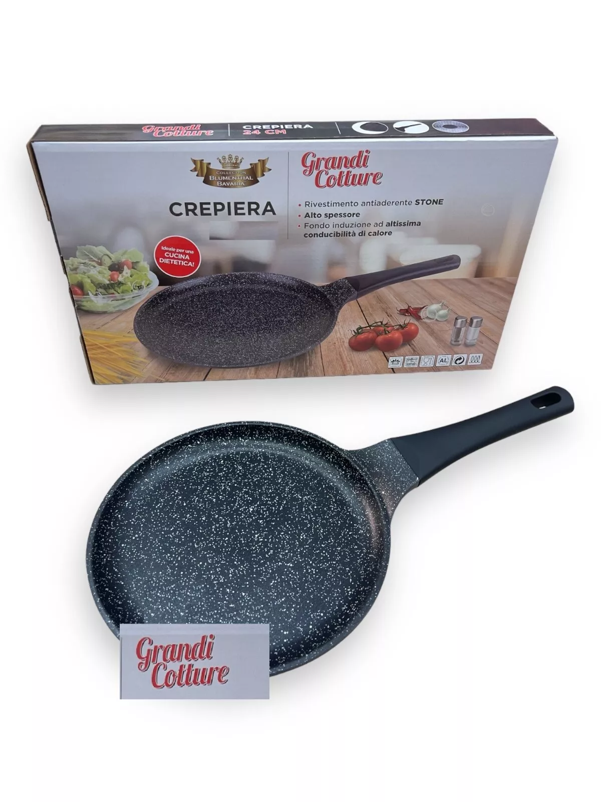 Padella Crepiera in Piera Lavica - Rivestimento Antiaderente Alluminio Tutti Fornelli induzione - Senza PFOA