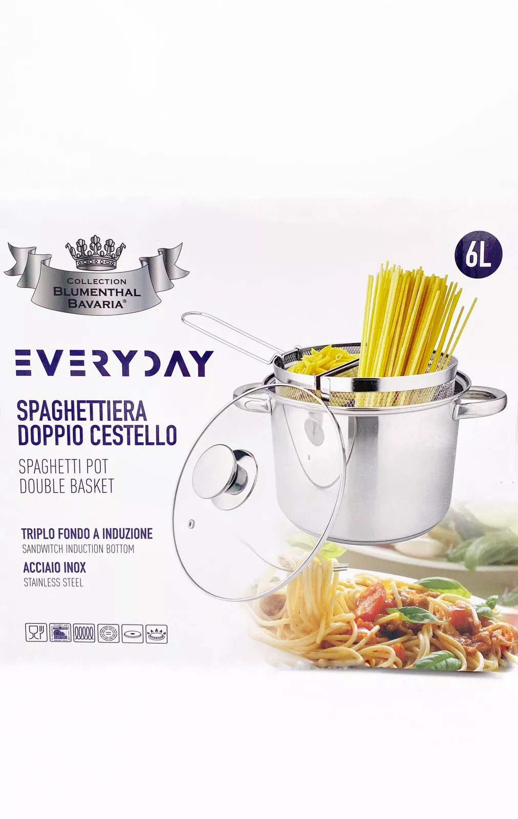 Spaghettiera pastarella Doppio Cestello 6 L In Acciaio Inox Triplo Fondo