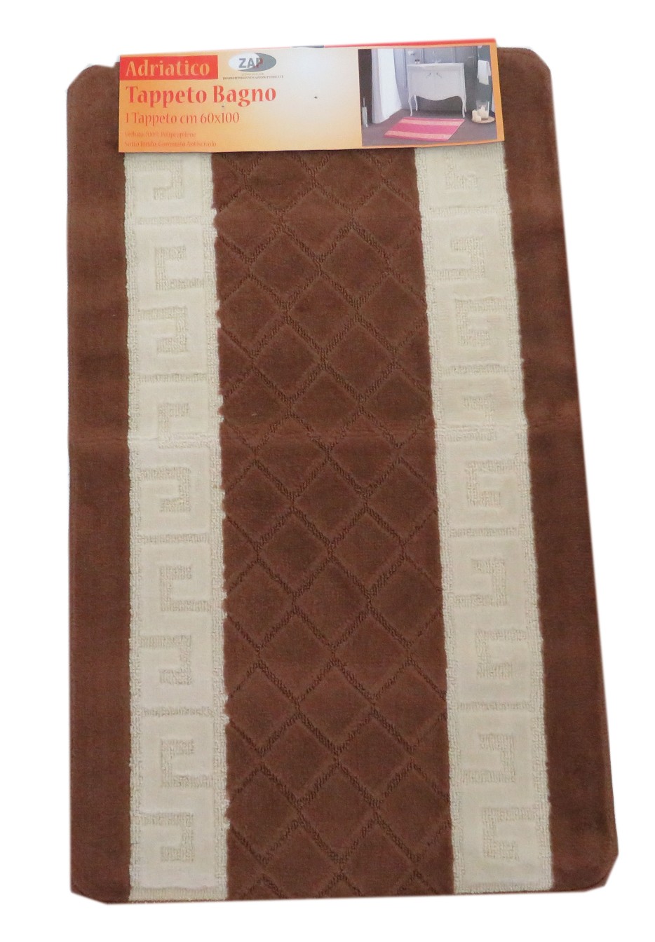 Tappeto bagno Marchio: Emika Colore:Rosa-Marrone-Celeste-Blu Articolo: Adriatico Caratteristiche: Velluto 100% polipropilene.Sotto fondo: gommato antiscivolo. Lavabile a 30° Dimensioni: 60x100