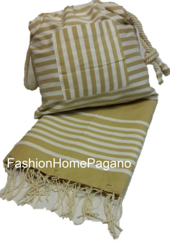 Telo mare con sacca abbinato Colore:Verde- Tortora- Corda-Fuxia-Arancione-Blu-Tiffany Codice:CM56420504-CM56420704-CM56420104-CM56420204-CM56420404-CM56420304-CM56421004 Articolo: Linea Oro