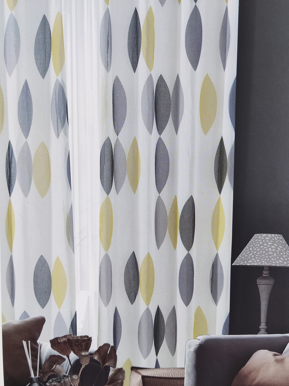 Caratteristiche: Pannello tenda con 8 anelli in acciaio di diamentro 3.5 cm rifinita con piombo. La confezione comprende 1 telo. Tessuto vedo non vedo semitraparente fantasia geometrica stampa digitale. Composizione poliestere