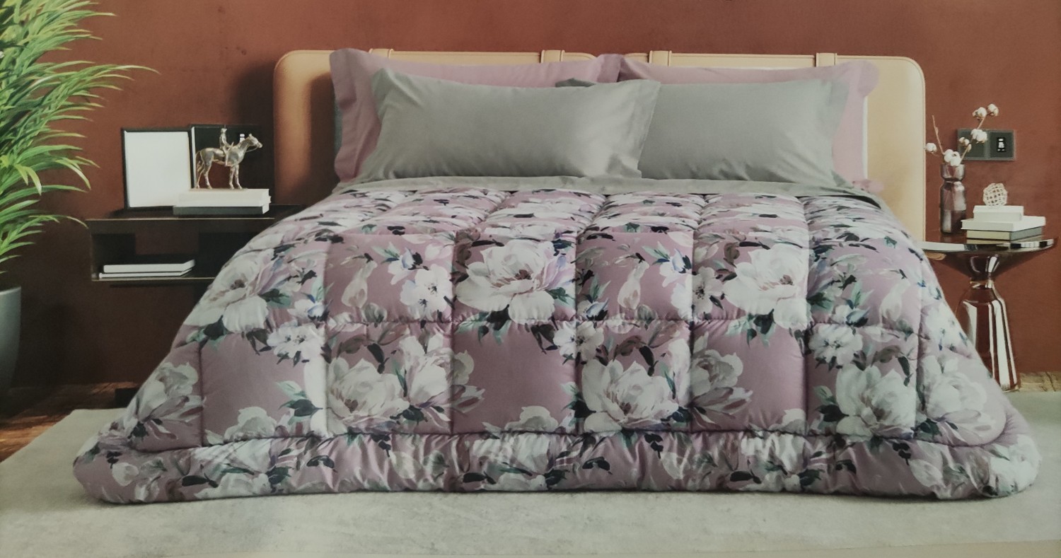 Marchio:Linea Oro Cod:DAFNE-68.22 Caratteristiche: Trapunta piumone matrimoniale in microfibra con stampa digitale floreale con un'imbottitura di 350gr 100% poliestere anallergica e traspirante risulta leggera.Lavabile a 40° Molto calda e soffice ideale per l'inverno,
